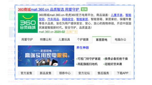 基于360搜索平臺(tái),通過360特有的匹配技術(shù),對(duì)網(wǎng)民的搜索詞進(jìn)行匹配,定位目標(biāo)用戶 從而精確展現(xiàn)企業(yè)的推廣信息的營(yíng)銷產(chǎn)品。360搜索平臺(tái)每日有數(shù)億次的網(wǎng)民搜索行為,擁有海量的 優(yōu)質(zhì)流量,其中一部分搜索詞具有明確的商業(yè)需求信息,企業(yè)通過匹配關(guān)鍵詞技術(shù)進(jìn)行精細(xì)化投放, 不僅能夠準(zhǔn)確快速的鎖定用戶群體,覆蓋整個(gè)投放流程,還能讓有需求的潛在客戶更快速找到企業(yè) 和產(chǎn)品相關(guān)信息。